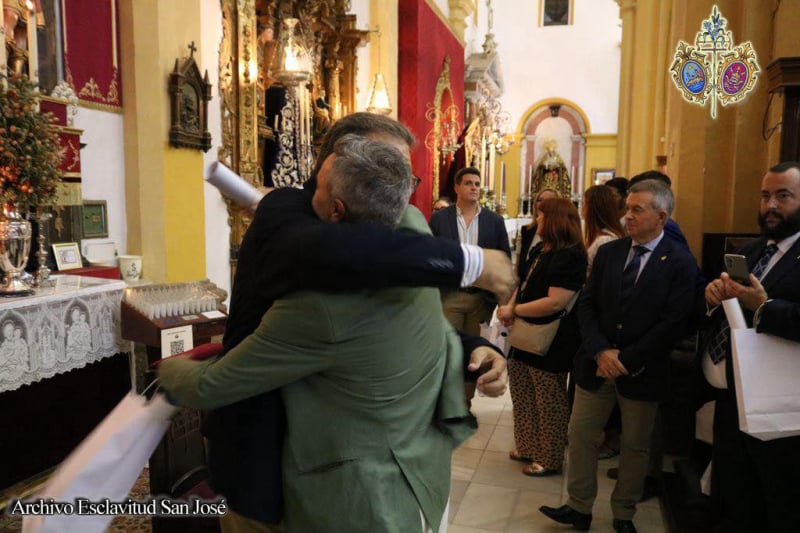Como detalle también, la representación de la Hermandad de Palomares de Trebujena hizo entrega de una medalla de Hermandad al Patrón como símbolo de fraternidad.