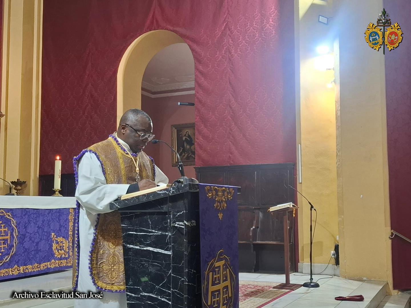 La celebración eucarística estuvo presidida y predicada por nuestro vicario parroquial, el Rvdo. Sr. D. Felix Désiré Amougou, que volvió a relacionar la liturgia del III Domingo de Cuaresma con el significado del misterio del Sexto Domingo de San José.