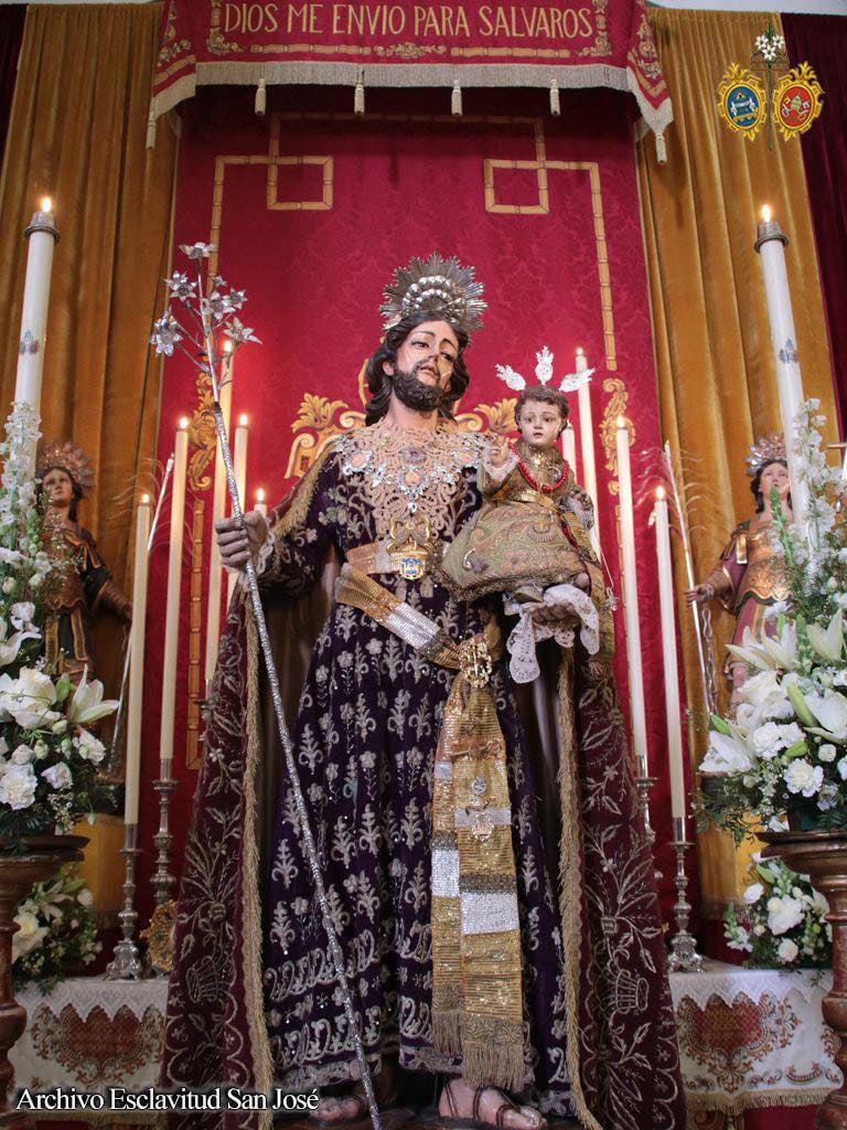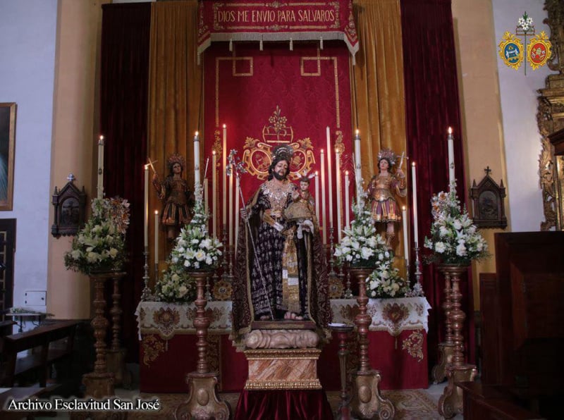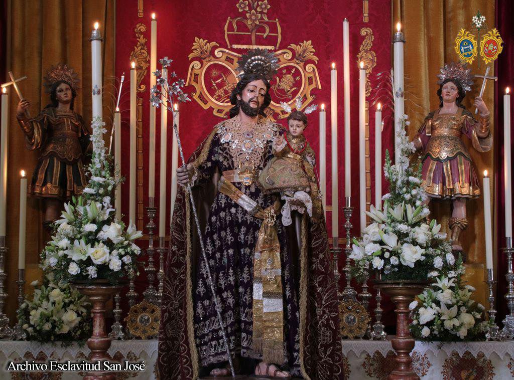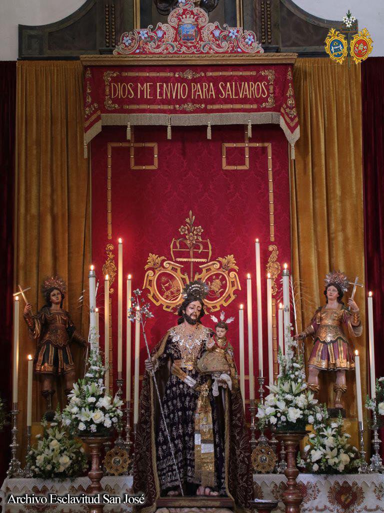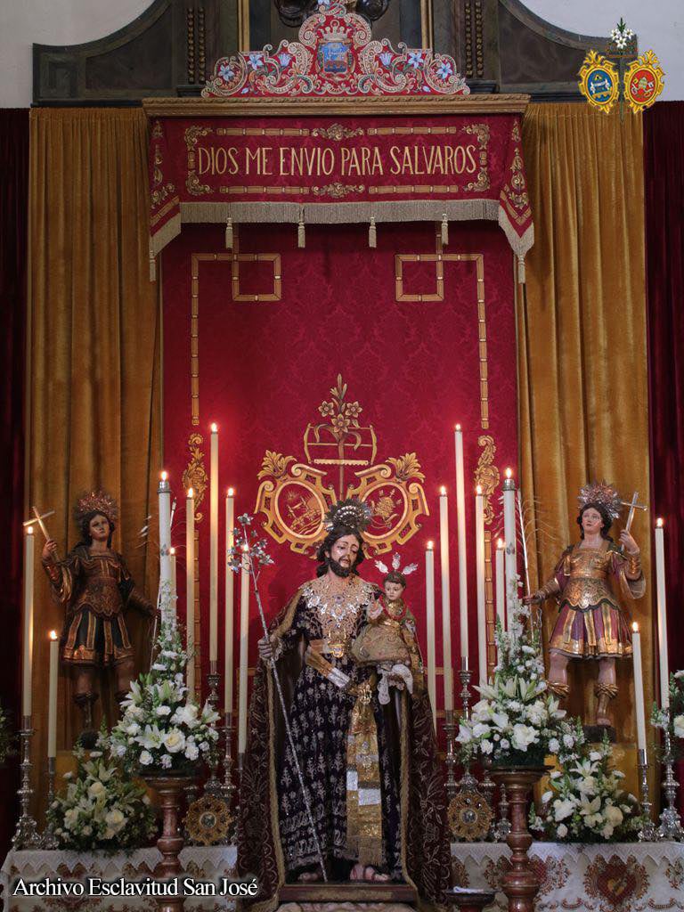 La comisión de mayordomía planteó un altar efímero para la jornada del 19 de marzo que concentró a los tres titulares de la Hermandad con San José en la parte central del altar sobre una peana de nubes, ubicándose San Servando y San Germán, Copatronos de la ciudad y titulares de la esclavitud en ambos extremos del altar. Bajo el dosel, la reliquia de Santa Teresa de Jesús, titular también de la Esclavitud, todo ello iluminado por catorce puntos de luz más los cuatro blandones que custodiaban al Patrón.