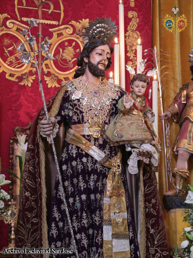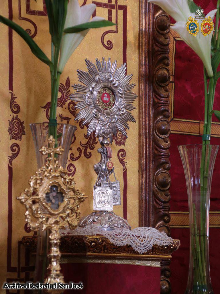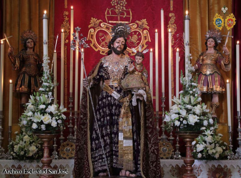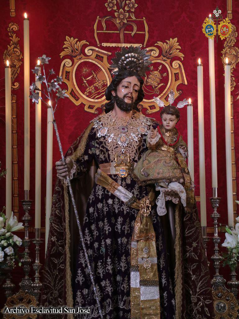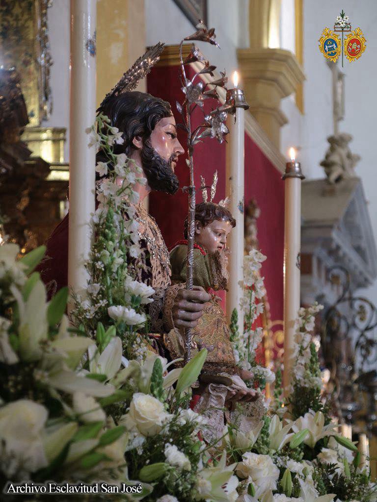 La comisión de mayordomía planteó un altar efímero para la jornada del 19 de marzo que concentró a los tres titulares de la Hermandad con San José en la parte central del altar sobre una peana de nubes, ubicándose San Servando y San Germán, Copatronos de la ciudad y titulares de la esclavitud en ambos extremos del altar. Bajo el dosel, la reliquia de Santa Teresa de Jesús, titular también de la Esclavitud, todo ello iluminado por catorce puntos de luz más los cuatro blandones que custodiaban al Patrón.