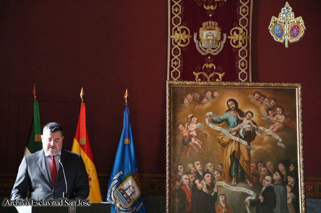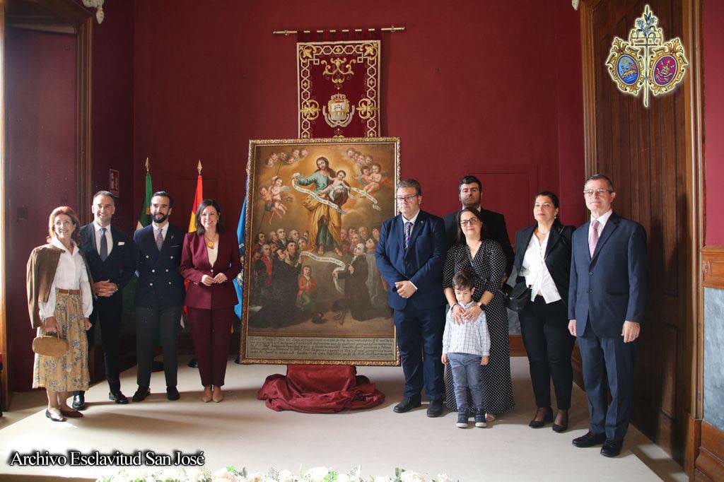 La mañana del pasado domingo fue una jornada histórica para nuestra Hermandad y, por qué no decirlo, para la ciudad de San Fernando, ya que regresaba al Palacio Consistorial uno de los símbolos identitarios de la Isla, como es el cuadro del Voto a San José, después de casi dos décadas fuera del lugar para el que fue concebido como Ex-Voto de acción de gracias, debido al cierre y posterior rehabilitación del edificio consistorial.