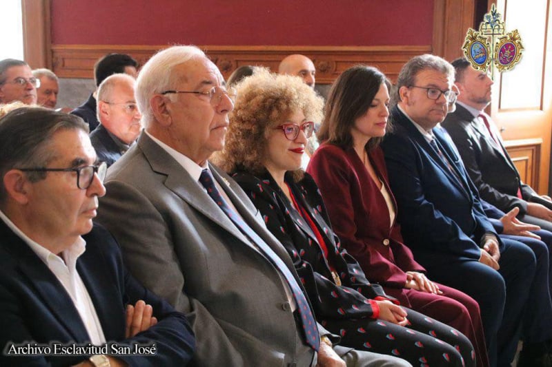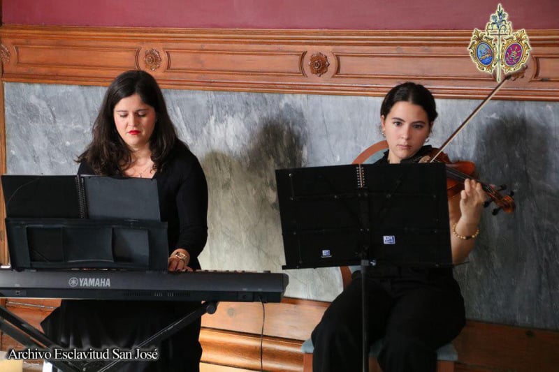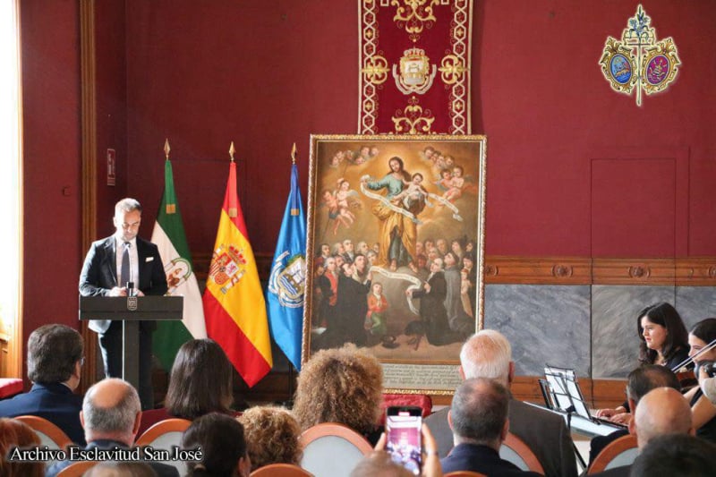 En el acto intervinieron, por supuesto, nuestro Hermano Mayor D. Alejandro Leiva Rosa y la Ilma. Sra. Alcaldesa, Dña. Patricia Cavada Montañés. Nuestro hermano, historiador y profesor de enseñanza secundaria, D. Diego José Ortiz Quintero, tuvo a su cargo la semblanza de la obra en todos sus aspectos; histórico, artístico, religioso e identitario, mientras que el dúo “Piano&Violin.Eventos” solemnizó aún más el acto con la interpretación de piezas como el “Himno a San José” de Beigbéder; el “Hallelullah” de Leonard Cohen; el “ Canon” Johann Pachelbel; el “Panis Angelicus” del Sacris Solemniis de Santo Tomás de Aquino y la “Salve Josefina” instrumentada por el músico gaditano D. Juan Antonio Verdía Díaz.
