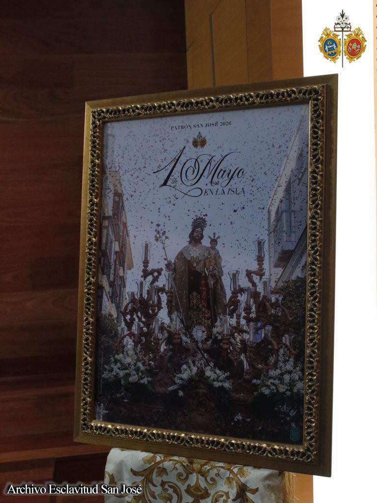 Nuestro hermano y Vice Hermano Mayor, D. Juan Manuel Rueda Cebada, condujo el acto y realizó una semblanza de nuestros dos hermanos josefinos para, a continuación, invitar al autor de la fotografía y a D. Jesús López Ramírez, por parte de la Corporación Municipal, a descubrir el cartel 1 de mayo en la Isla 2026, con edición y diseño de Rocío Cardoso Martínez.
