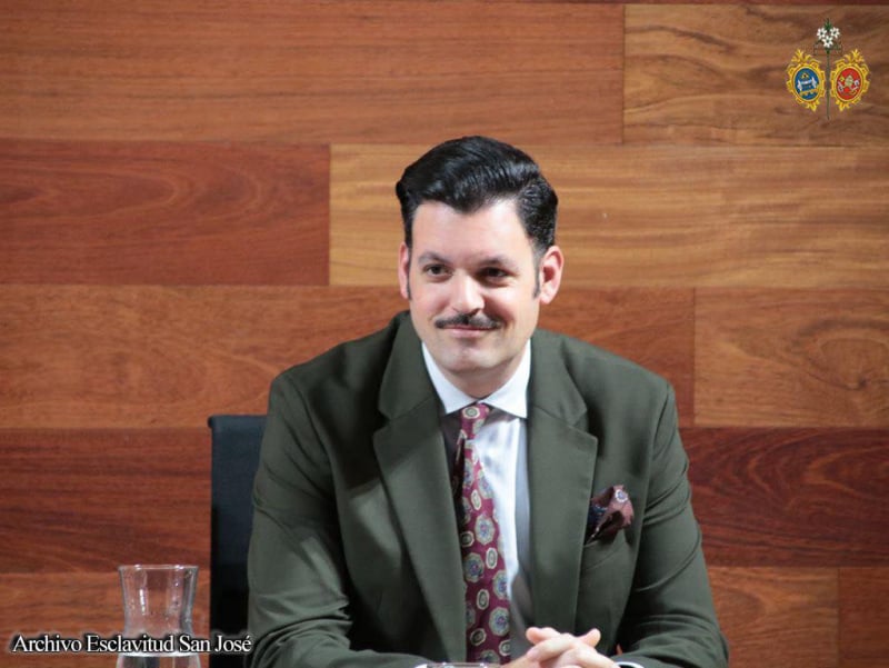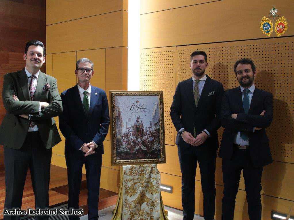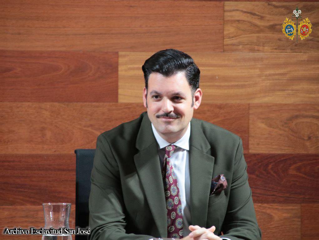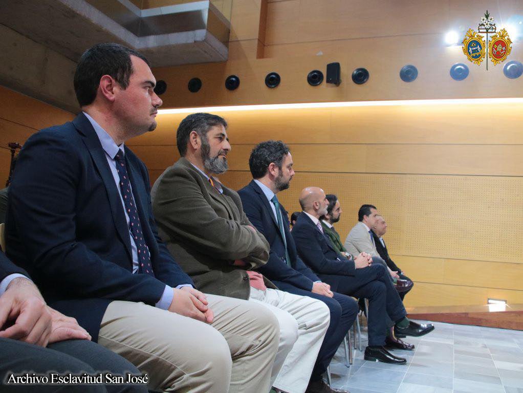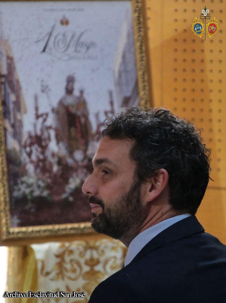 Nuestro hermano Andrés, como era de esperar, no defraudó a los presentes y desarrolló una brillante presentación del cartel hilvanando sus vivencias en torno al Patrón desde hace casi veinticinco años, desgranando la evolución experimentada por la Hermandad durante todos estos años, la idiosincrasia que caracteriza ser del Patrón y animando a todos a vivir intensamente nuestras particularidades vísperas y un 1 de mayo pleno con las destacadas novedades que incorpora, como son el acompañamiento musical a cargo de la Agrupación Musical “Lágrimas de Dolores” y la cuadrilla de costaleros que lo portará a San José por vez primera con nuestro hermano D. Miguel Luna León al frente.