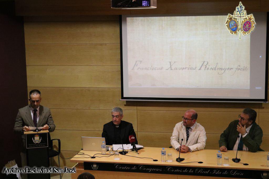 El pasado 24 de octubre, en el Centro de Congresos “Cortes de la Real Isla de León” tuvo lugar la primera de las citas que integran el ciclo de conferencias del CCXXV Aniversario del Voto y del Patronazgo de San José, en la que contamos con la presencia del sacerdote D. Álvaro Román Villalón, que desarrolló un extraordinario análisis de la figura artística de Francisco Xavier Riedmayer a través de su obra y, en especial, a través del cuadro del Voto a San José, del que realizó una extraordinaria descripción y análisis artístico y teológico, poniendo de relevancia su profundo significado y trascendencia en todos los aspectos.